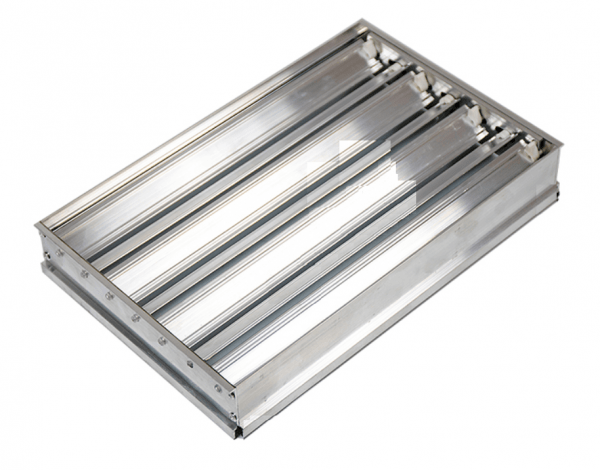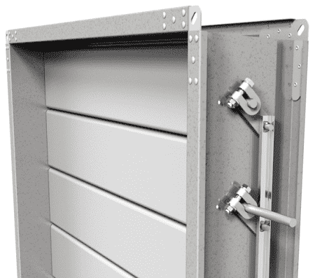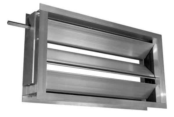 Воздушный клапан стальной усиленный с ручным приводом либо с площадкой под привод. Ламели выполнены из алюминия, рама из оцинкованной стали. Предназначена для открытия или закрытия вентиляционного канала или иного строительного проема, через который проходит поток воздуха, при различных скоростях и объемах. Возможна комплектация специальным проводом для утепления периметра рамы клапана.