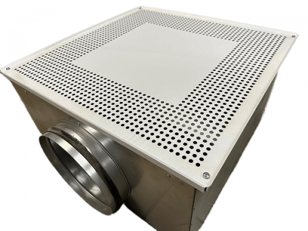 Потолочный диффузор круглой формы с перфорированной панелью. Данное устройство имеет присоеденительную муфту. Лицевая панель легко снимается не используя магниты, которые являются не надежным и не экологичным вариантом.