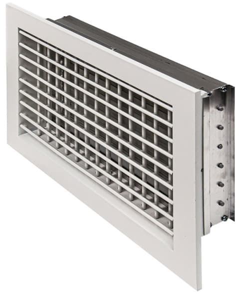 Двухрядная регулируемая решетка с усиленной рамой РЭД-Р2-45, отличается от обычных решеток усиленной рамой сечением 45х45 мм. Данный вид решеток может комплектоваться клапаном расхода воздуха, а монтаж осуществляется с помощью саморезов или специальных защелок.