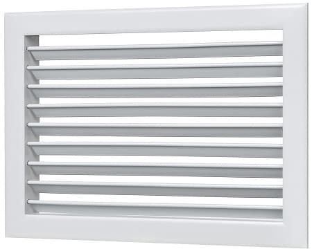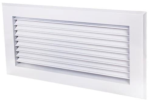 Является стандартной однорядной решеткой с регулируемыми жалюзи. Может комплектоваться клапаном расхода воздуха по запросу. Монтаж осуществляется на защелки или саморезы. Данная решетка полностью выполнена из алюминиевого профиля и окрашена порошковой краской.