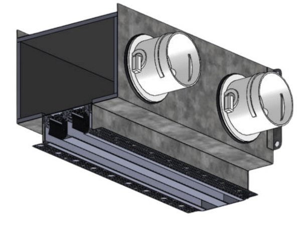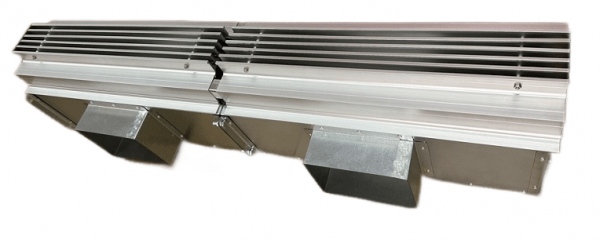 Рекомендуем заказывать в нержавеющем исполнении, но возможно изготавление из оцинкованной стали. Применяется в бассейнах или в иных помещениях с большой площадью застекления и влажности. Устанавливаются в пол скрытым способом. Струя теплого воздуха обдувает стекла и предотвращает запотевание.