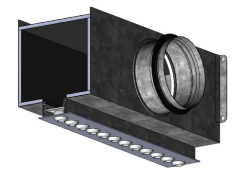 КСД для щелевого диффузора отличается от обычных адаптеров, тем что в конструкции есть специальные крепежные элементы, с помощью которых можно присоединить щелевой диффузор по всей длине.