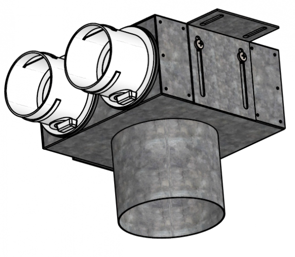 Вентиляционный адаптер под потолочную с круглым входом и выходом определенного диаметра для гибких и металлических воздуховодов.