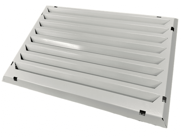 Стальная жалюзийная решетка декоративная изготавливается из оцинкованного листа толщиной 1 мм. и алюминиевой рамы (три варианта 18,29 и 40 мм фланец).
